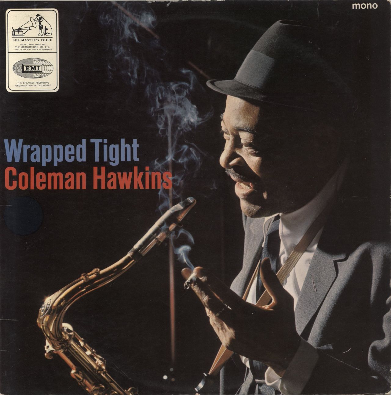 COLEMAN HAWKINS Wrapped Tight (1965 UK His Master's Voice label 10-track MONO vinyl LP with Urbie Green, Barry Harris, Buddy Catlett and Eddie Locke all performing, plus Bill Berry and Snooky Young alternating on trumpet. Slight storage wear evident to the front laminate flipback picture sleeve, otherwise the vinyl is MINT and kept in an illustrated HMV catalogue inner CLP1899)