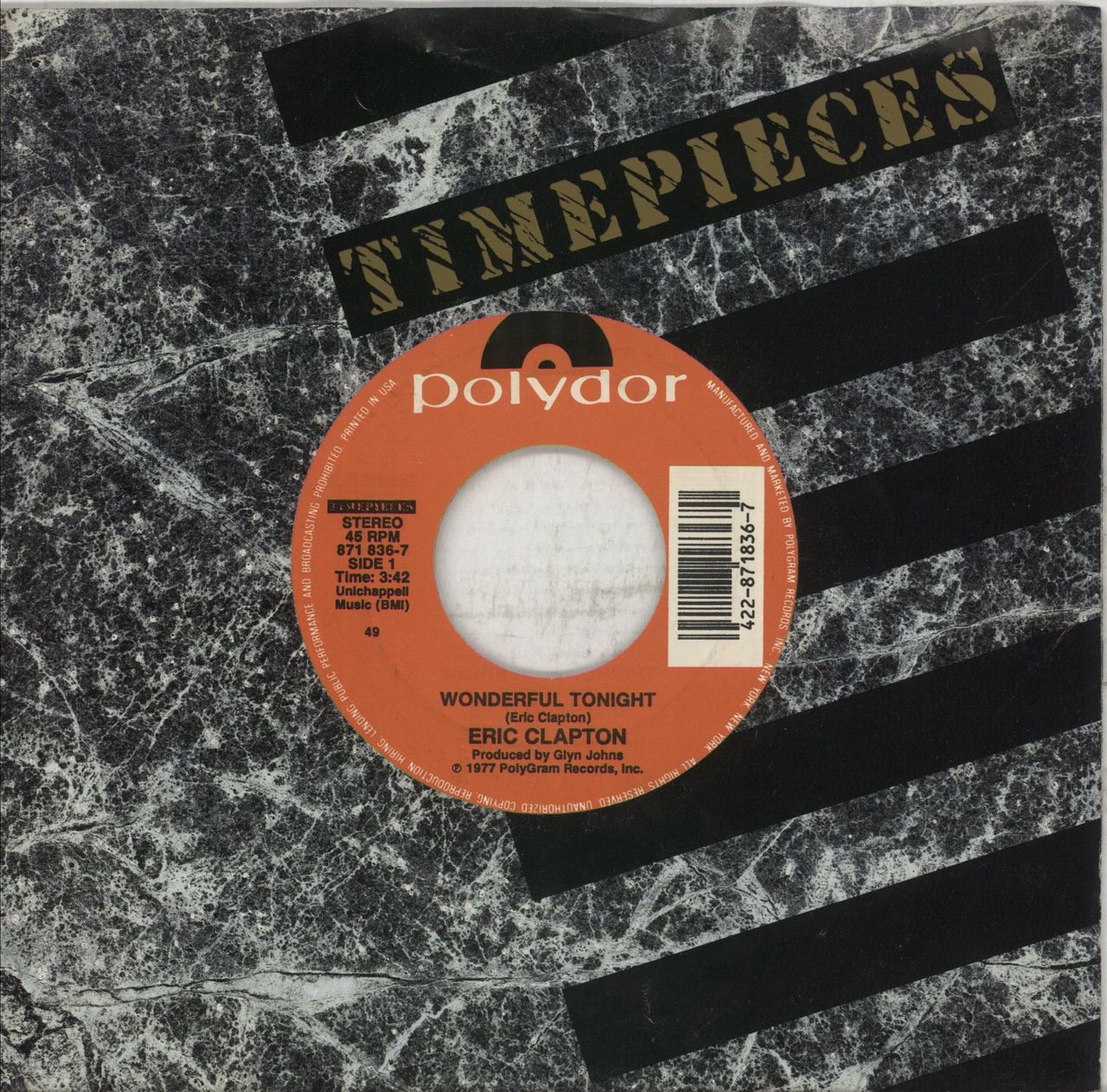 ERIC CLAPTON Wonderful Tonight (1989 US wide centre 7" vinyl single, also including Promises, Time Pieces series die-cut paper sleeve. Both sleeve and vinyl remain in Excellent condition RS895)