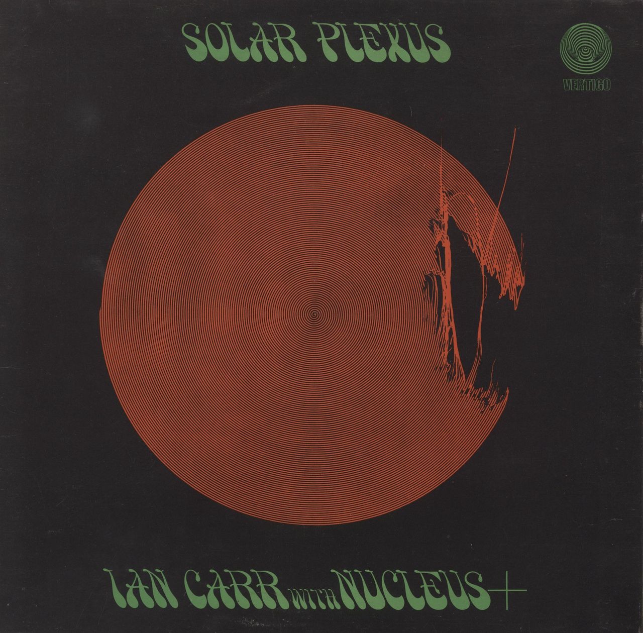 NUCLEUS Solar Plexus (Rare 1971 UK second press 6-track LP on the small 'swirl' logo label, complete with 'swirl' inner, gatefold picture sleeve. The sleeve shows just a little light scuffing at the corners and light general wear, whilst the vinyl displays a small annotation to the label whilst remainining in Excellent condition with few signs of play - A great copy!)