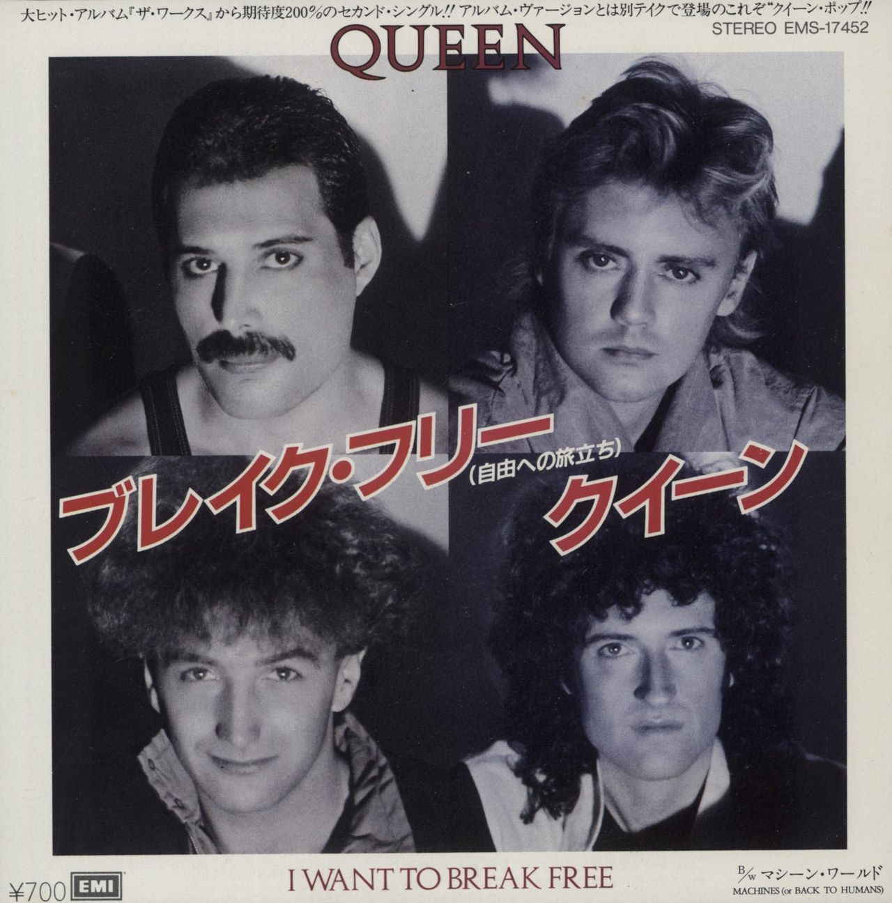 QUEEN I Want To Break Free (1984 Japanese 7" vinyl single featuring the Single Version, also including Machines [Or Back To Humans], with the unique picture insert printed with Japanese text biography and lyrics on the reverse. The insert displays very light age wear and the vinyl has minimal evidence of play EMS-17452)
