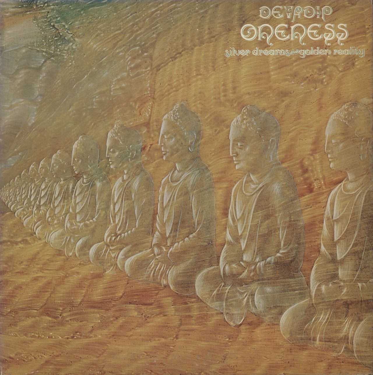 DEVADIP CARLOS SANTANA Oneness (1979 Japanese 15-track vinyl LP, with the first six tracks recorded live in Osaka, housed in a pasted gatefold sleeve with wonderful imagery inside & out & with picture labels on the disc, comes with glossy lyric inner & illustrated Japanese text biography insert. The sleeve shows minor general wear and the vinyl remains in Excellent condition 25AP1337)