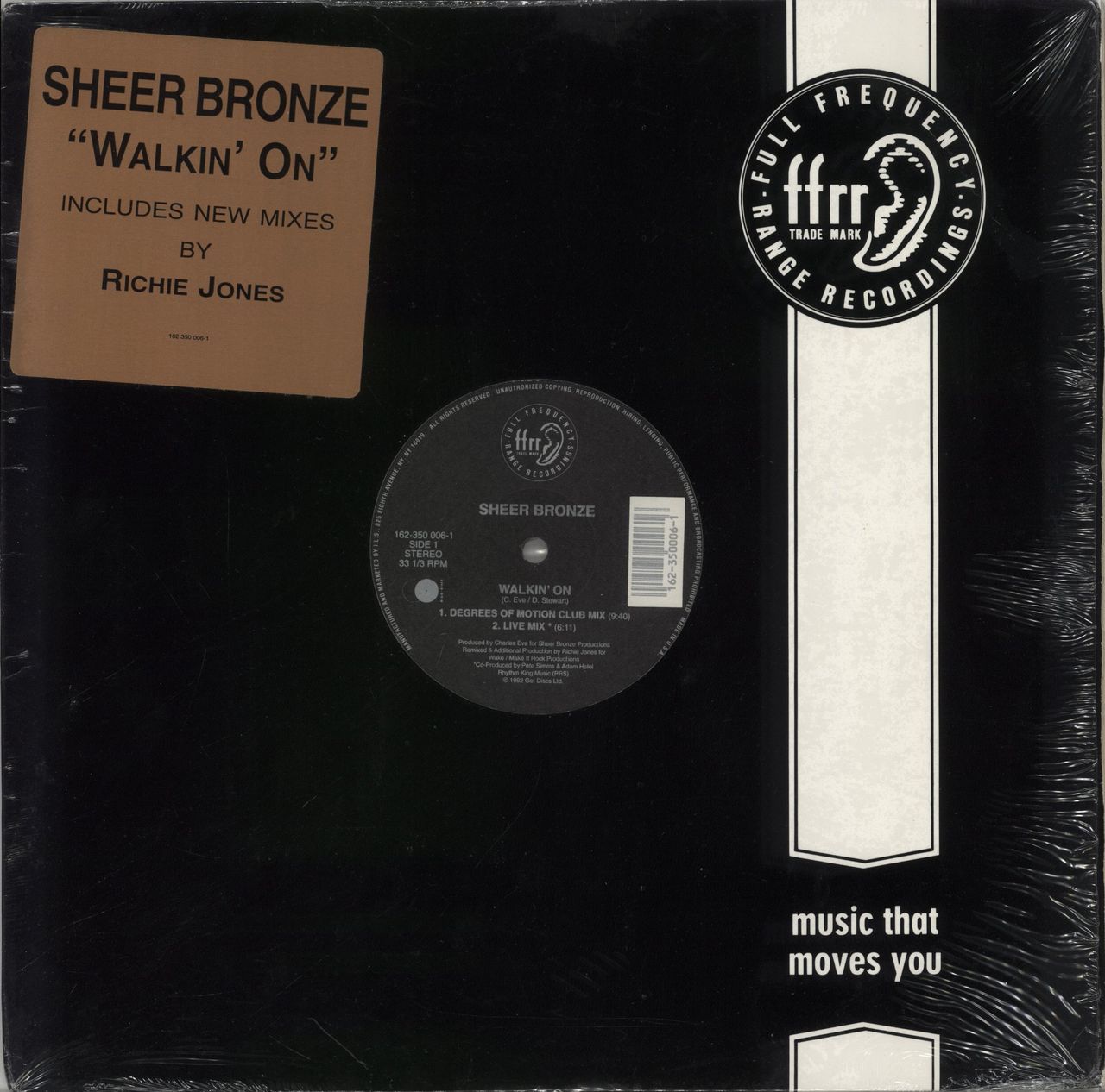 SHEER BRONZE Walkin' On (1992 US 5-track 12" vinyl single, including Degrees Of Motion Club Mix, Live Mix, Bumpin' Mix, die-cut company sleeve in its opened title stickered shrinkwrap)