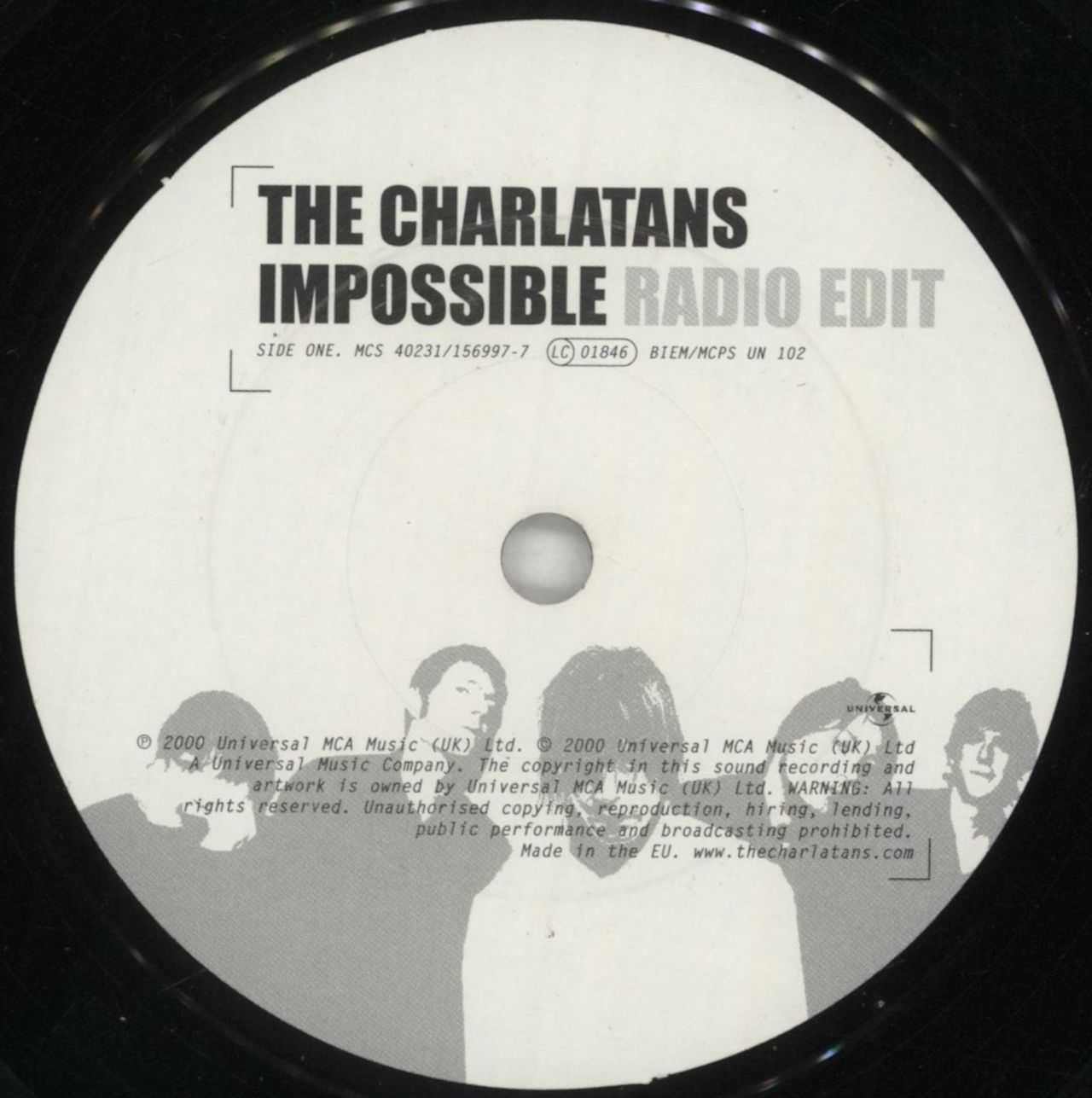 THE CHARLATANS Impossible (2000 UK limited edition 7" vinyl single, also including 'You Got It, I Want It'. The glossy picture sleeve displays a little scuffing and corner wear. Complete with the large fold-out poster which remains unused. Whilst the vinyl is in Excellent condition with little sign of play MCS40231)
