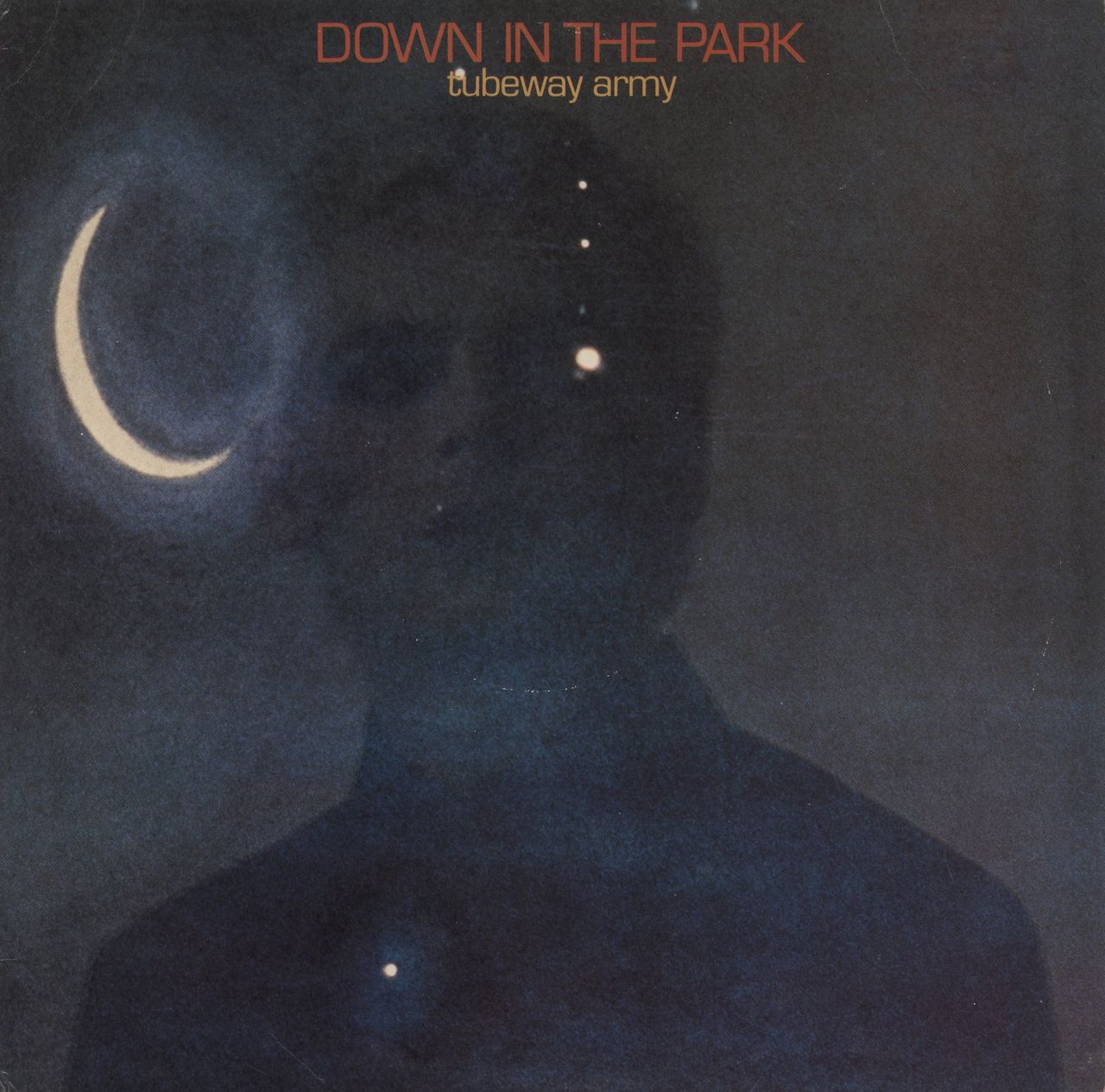 TUBEWAY ARMY Down In The Park (Rare 1979 UK 3-track 12" vinyl single, also including Do You Need The Service & I Nearly Married A Human 2. glossy picture sleeve. The sleeve [VG] has some notable corner crease and light edgewear, whilst the vinyl remains in EX condition. A great play copy BEG17T)
