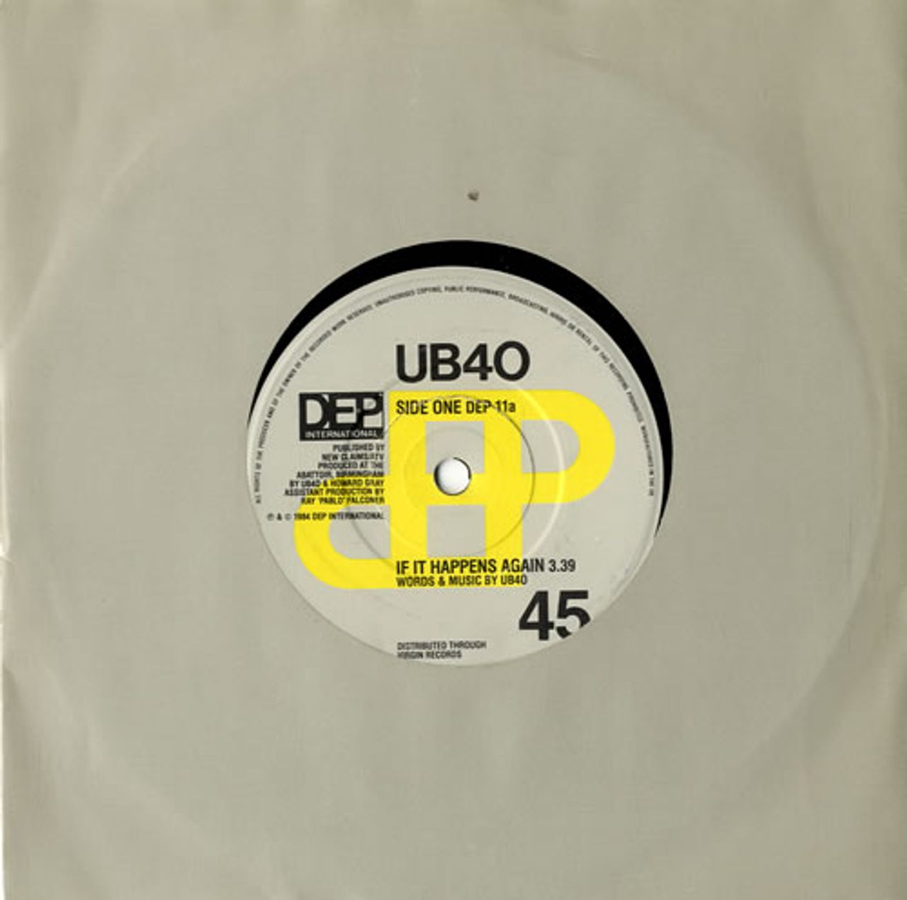 UB40 If It Happens Again (1984 UK solid centred 7" single, also includes Nkomo A Go-Go, plain company die-cut paper sleeve DEP11)
